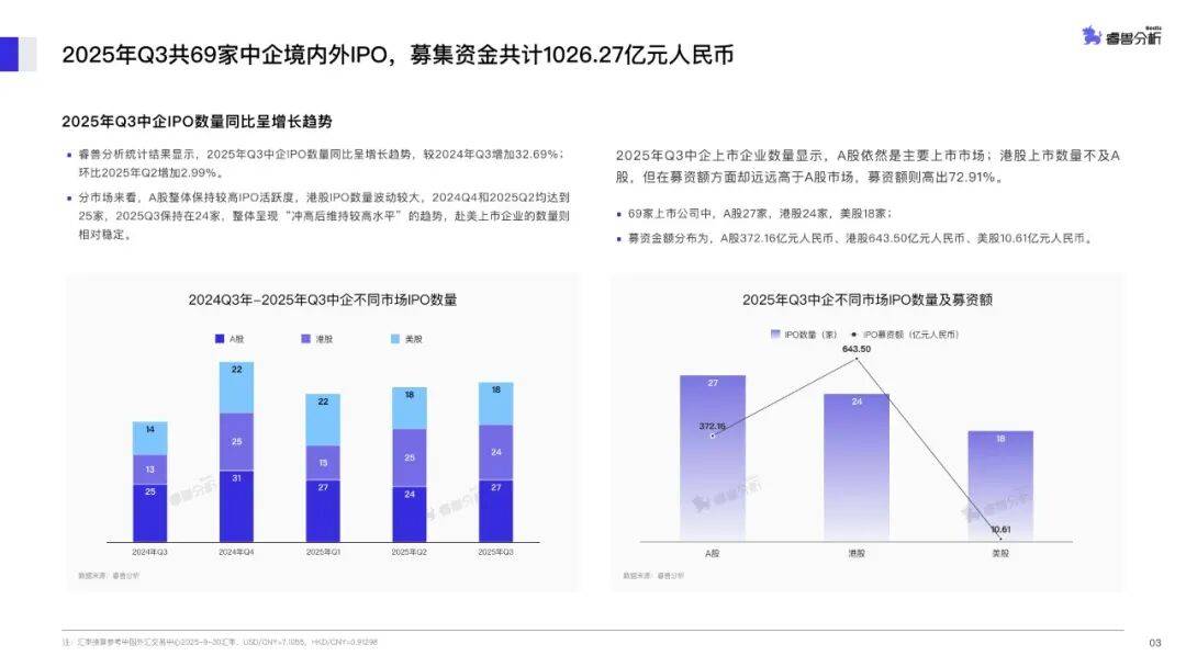 以上内容摘自睿兽分析《2025年Q3中企境内外IPO季度报告》,更多详细内容及数据分析,请登录睿兽分析网站完整版报告。