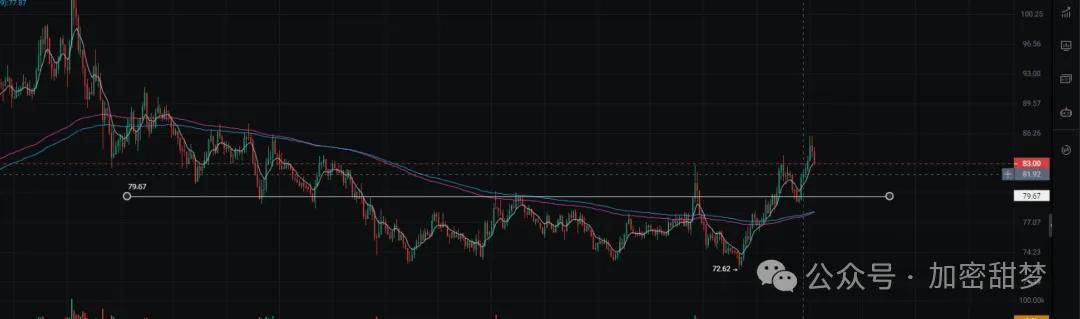 SOL的刹车点位在124-127区间内,今天反弹幅度最大,单日振幅在在8%左右,今天突破了1日ema7(141.25),阻力上移到了12小时boll中轨(145.25)附近,145是起跌点128.85反弹上来的小波段最高点,所以看起来白天反弹强
