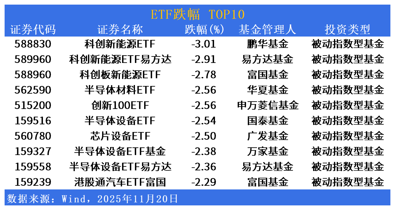 2025年11月20日,Wind数据显示,A股三大指数今日集体回调,截止收盘,沪指跌0.40%;深证成指跌0.76%;创业板指跌1.12%。沪深两市成交额17082亿。