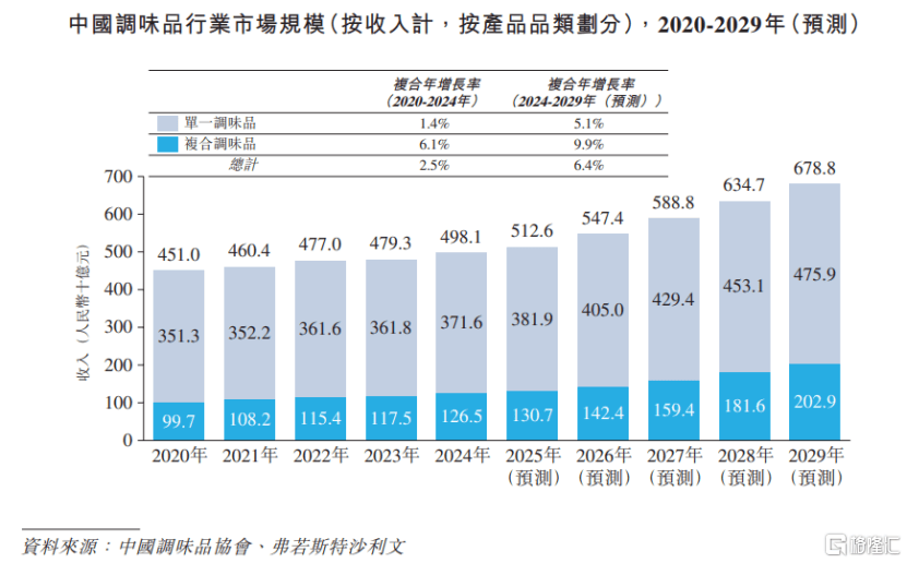 调味品的使用频率高,属于需求相对稳定的消费品。按收入计算,2024年全球调味品市场规模约2.14万亿元,预计到2029年将达到2.87万亿元。
