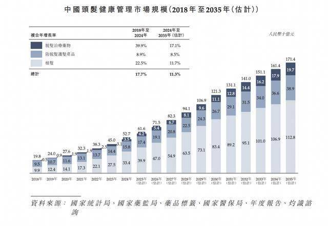 中国头发健康管理市场规模从2018年的198亿元大幅增长至2024年的527亿元,复合年增长率为17.7%,预计2035年将进一步扩大至1,714亿元,2024年至2035年的复合年增长率为11.3%。其中,中国脱发药物治疗市场规模由2018年的5亿元迅速增长至2024年的35亿元,复合年增长率为39.9%,预计2035年将进一步达到197亿元,2024年至2035年的复合年增长率为17.1%。