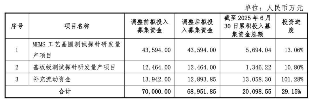 2022年,和林微纳实施定增,实际募资6.9亿元,计划投向“MEMS工艺晶圆测试探针研发量产项目”、“基板级测试探针研发量产项目”,以及补充流动资金。