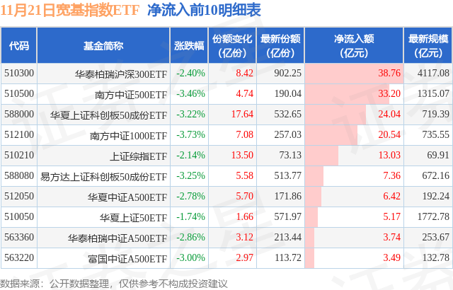 【ETF观察】11月21日宽基指数ETF净流入188.05亿元