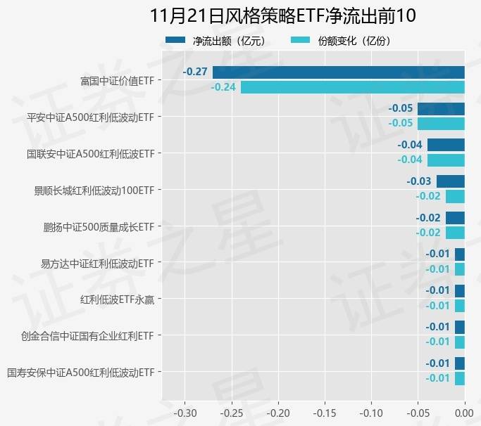 当日有9只风格策略ETF基金出现资金净流出,其中净流出排首位的是富国中证价值ETF(512040),份额减少了2400.0万份,净流出额为2672.27万元。