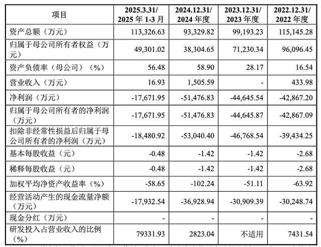 报告期各期,公司归母净利润分别为-4.29亿元、-4.46亿元、-5.15亿元和-1.77亿元。