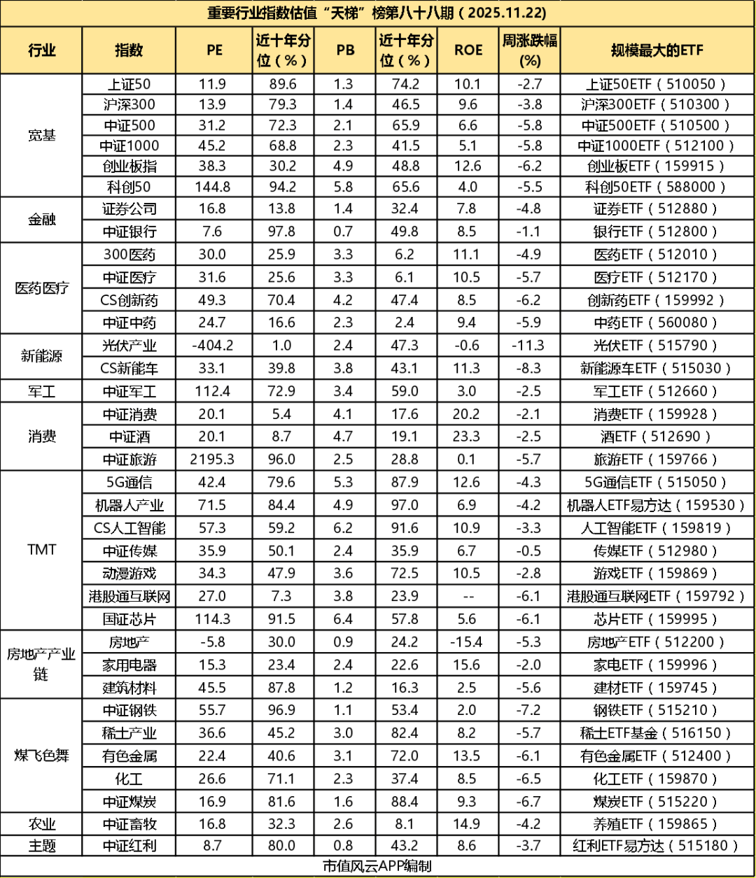 各位老铁大家好,这里是市值风云基金研究部ETF栏目,会在每周末发布ETF基金最新的市场数据和相应指数的估值数据。今天为第八十八期。
