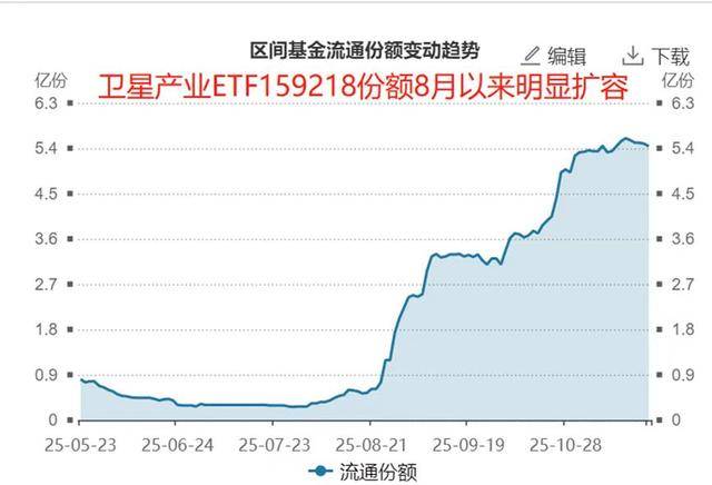卫星产业ETF(159218)作为全市场首只跟踪中证卫星产业指数的标的,覆盖卫星制造、发射、导航通信应用等全产业链环节。成分股包括中国卫星、中国卫通、臻镭科技等龙头企业,涵盖国防军工(54%)、计算机(15.1%)、电子(12.2%)等高增长行业。今年以来份额增长414.8%,为投资者提供了一键布局卫星产业发展的便捷工具。