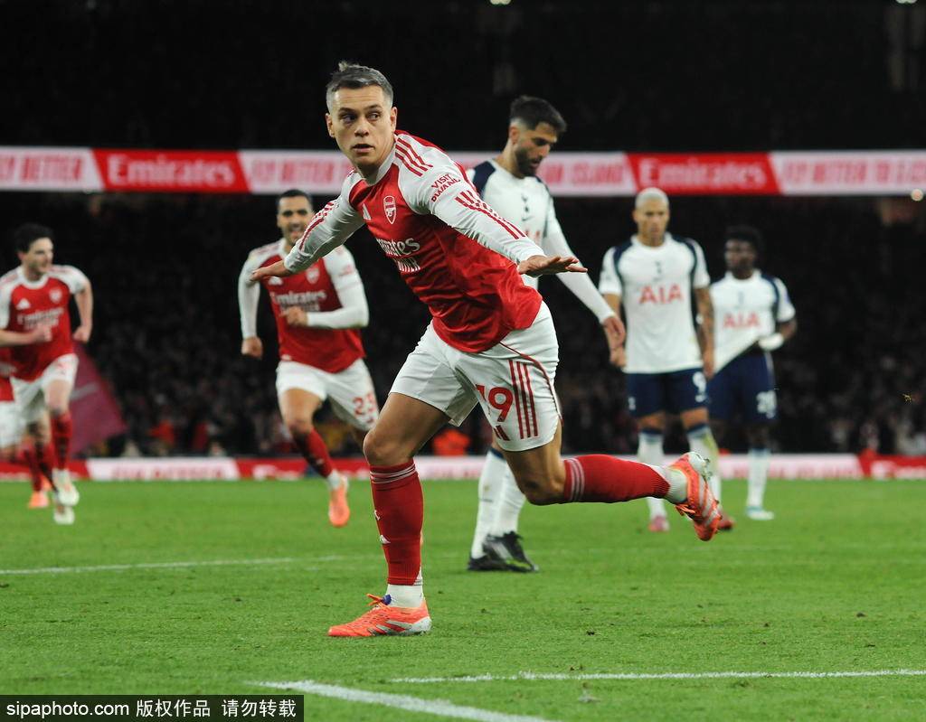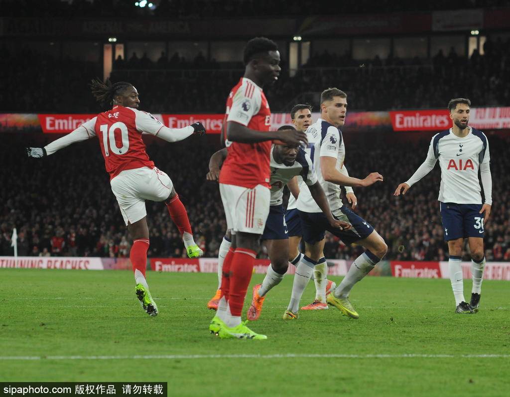 北京时间11月24日凌晨0:30分,英超联赛第12轮迎来北伦敦德比,阿森纳在主场对阵托特纳姆热刺。上半场比赛,特罗萨德为阿森纳首开纪录,埃泽扩大比分,半场阿森纳2-0领先热刺;下半场,埃泽再入两球锁定胜局,理查利森的吊射为热刺扳回一城,最终阿森纳主场4-1战胜热刺,拿下各项赛事15场不败,领先切尔西6分继续领跑积分榜。