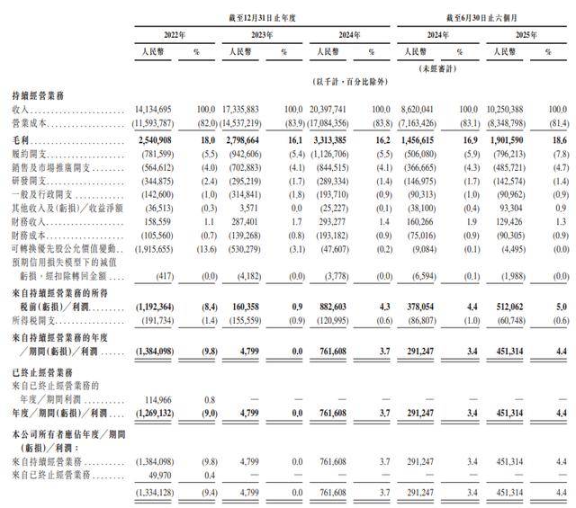 业绩方面,京东工业持续经营业务总收入由2022年的人民币141亿元增至2023年的173亿元,2024年的204亿元,复合年增长率达到20.1%。持续经营业务总收入由截至2024年6月30日止六个月的人民币86亿元增加18.9%至截至2025年6月30日止六个月的人民币103亿元。