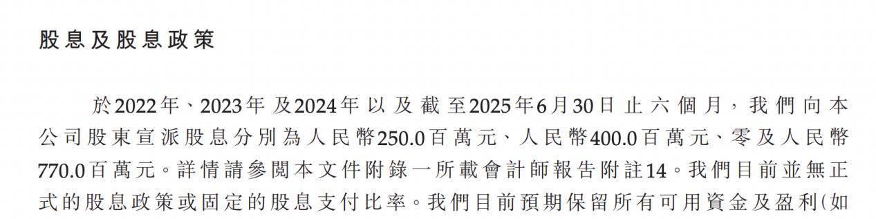 2022年-2024年及2025年上半年,蔓迪国际向公司股东宣派股息分别为2.5亿元、4亿元、0及7.7亿元。