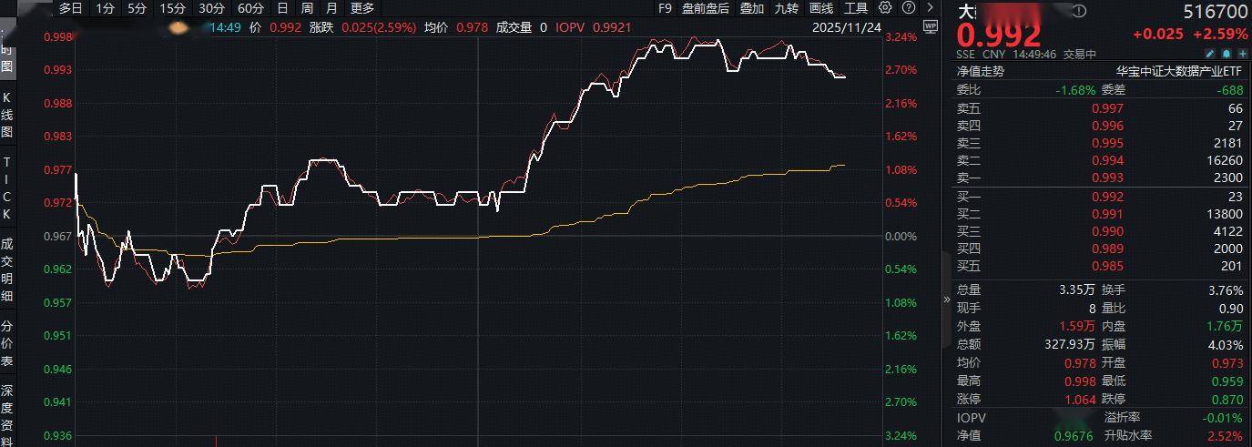 ETF盘中资讯 | 阿里巴巴概念拉升,石基信息、数据港双双涨停!大数据产业ETF(516700)盘中猛拉3.2%