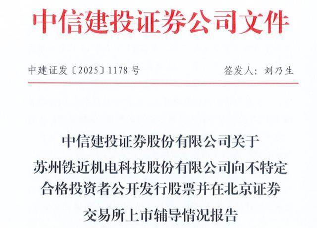 瑞财经 严明会 近日,苏州铁近机电科技股份有限公司(以下简称:铁近科技)披露北交所IPO辅导完成报告,辅导机构中信建投证券。