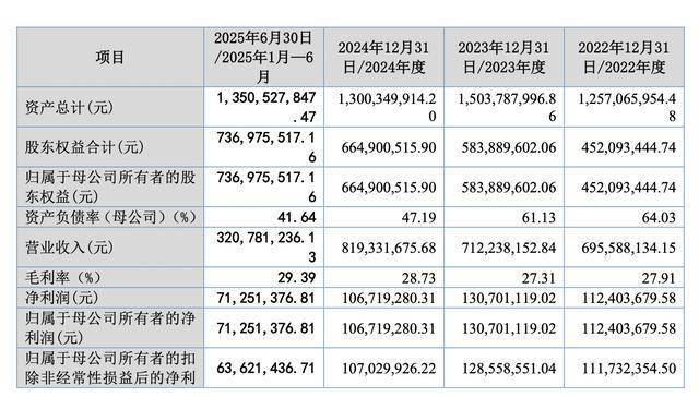 据招股书,2022年-2024年及2025上半年,永大股份实现营收分别为6.96亿元、7.12亿元、8.19亿元、3.21亿元;归母净利润分别为1.12亿元、1.31亿元、1.07亿元、7125.14万元。
