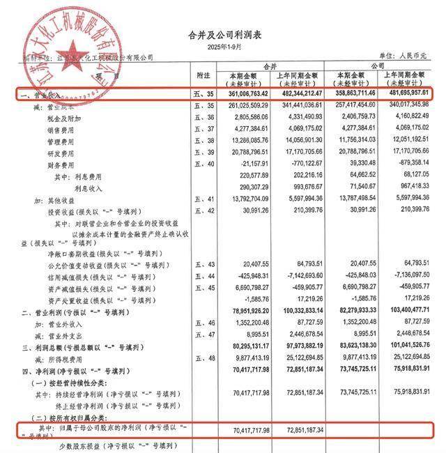 2025年1-9月,公司实现营收为3.61亿元,同比减少25.2%;归母净利润为7041.77万元,同比下降3.34%。