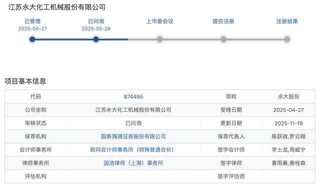 据了解,永大股份的IPO申请于2025年4月27日获受理,至今不到一年时间。