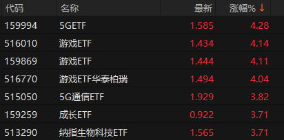 11月25日,ETF收盘涨跌不一,5GETF(159994)领涨4.28%,游戏ETF(516010)涨4.14%,游戏ETF(159869)涨4.11%,沙特ETF(520830)领跌1.38%,沙特ETF(159329)跌1.05%,日本东证指数ETF(513800)跌1.05%。