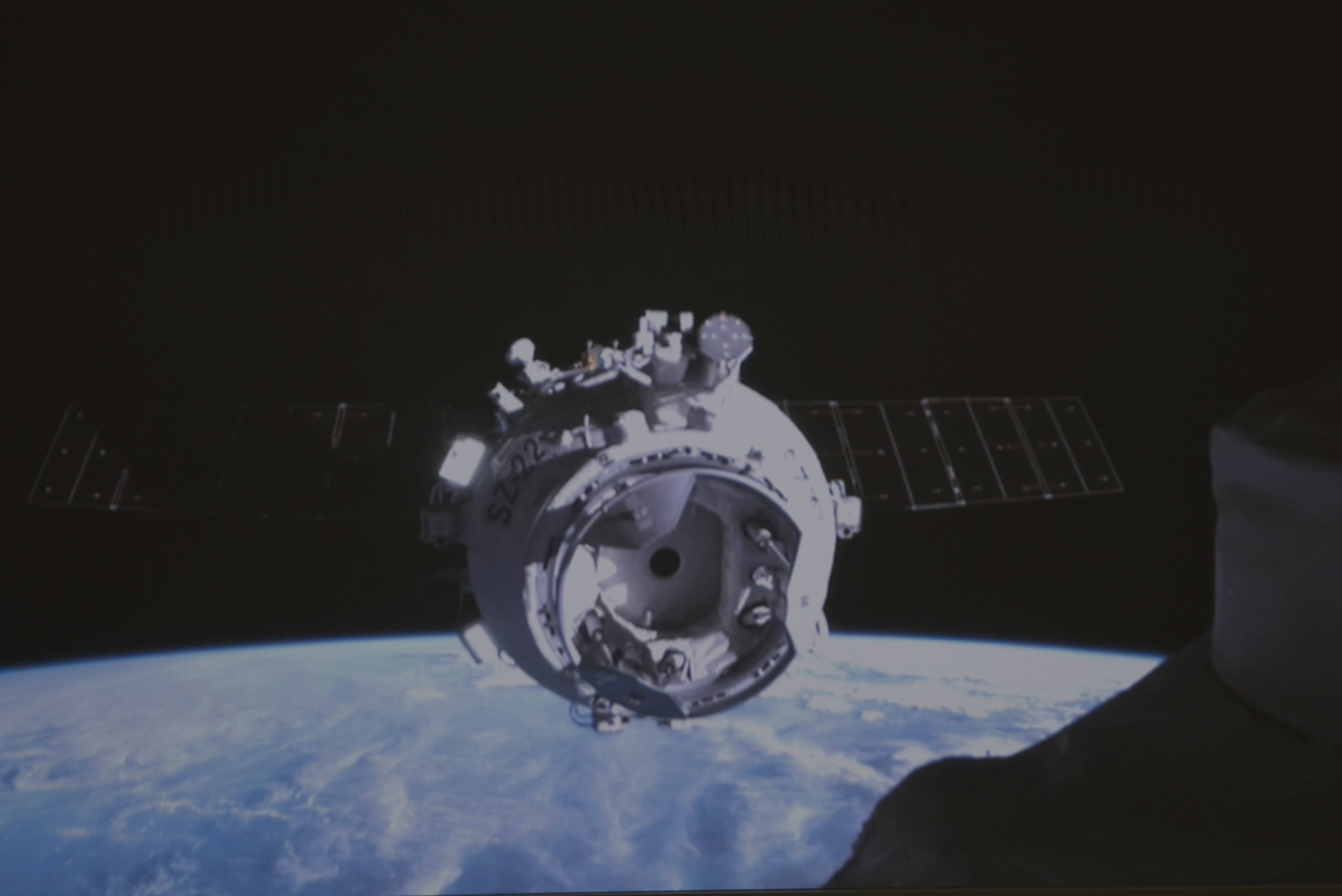 这是11月25日在北京航天飞行控制中心拍摄的神舟二十二号飞船与空间站组合体交会对接过程的实时画面。 新华社记者 王春涛 摄