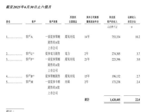 2022年-2025年上半年,客户A一直是滨化股份的最大客户,今年上半年,其向滨化股份采购了7.53亿元的环氧丙烷,而2022年-2024年,其向滨化股份的采购额分别为7.06亿元、7.09亿元、6亿元。