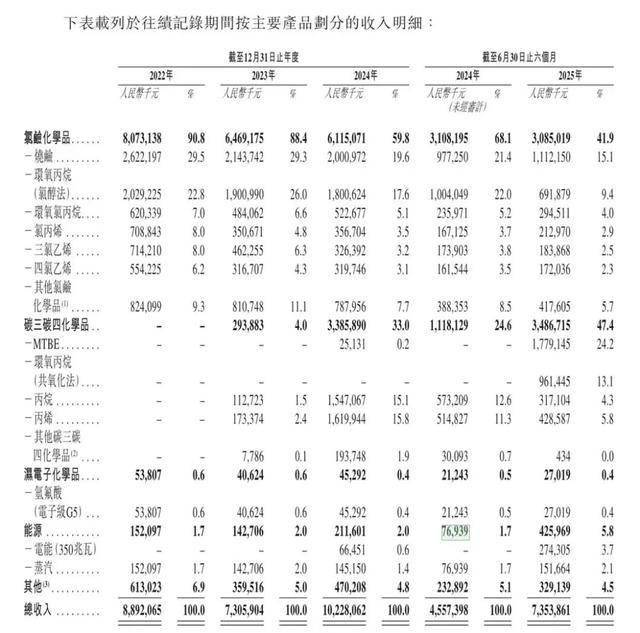 值得注意的是,滨化股份并不生产丙烷,但有来自丙烷的收入,2023年-2025年上半年分别为1.13亿元、15.47亿元、3.17亿元。招股书指出,滨化股份是向外部方采购丙烷后加工成丙烯,或直接销售。