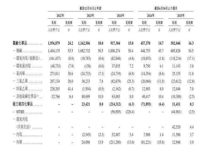 2023年-2025年上半年,滨化股份碳三碳四化学品的毛利率各期则分别为8%、-6.3%、0.3%。新投产MTBE,今年上半年毛利率为-2.5%,卖出17.79亿元让滨化股份亏了4447.5万元。环氧丙烷(共氧化法)的毛利率要稍高一些,今年上半年为4.4%。