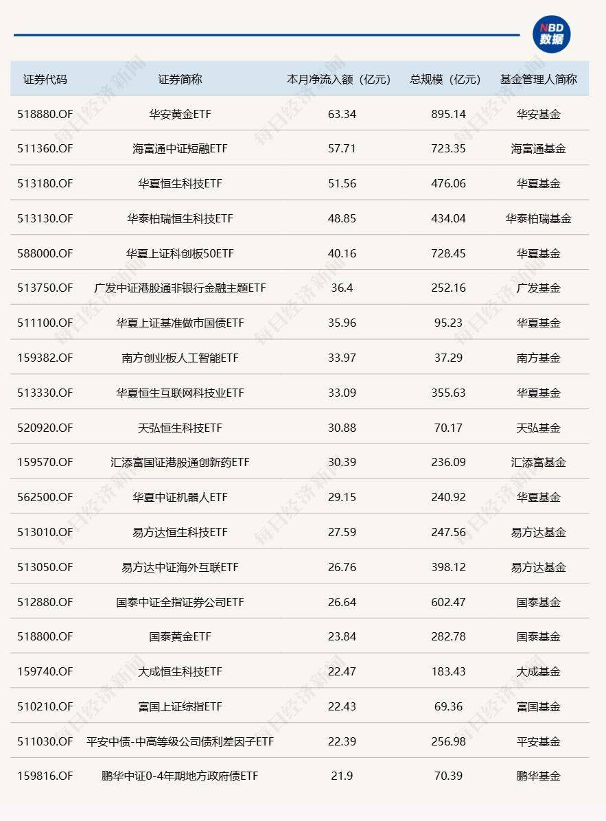 截至11月25日,本月资金净流入额居前20的ETF名单如下: