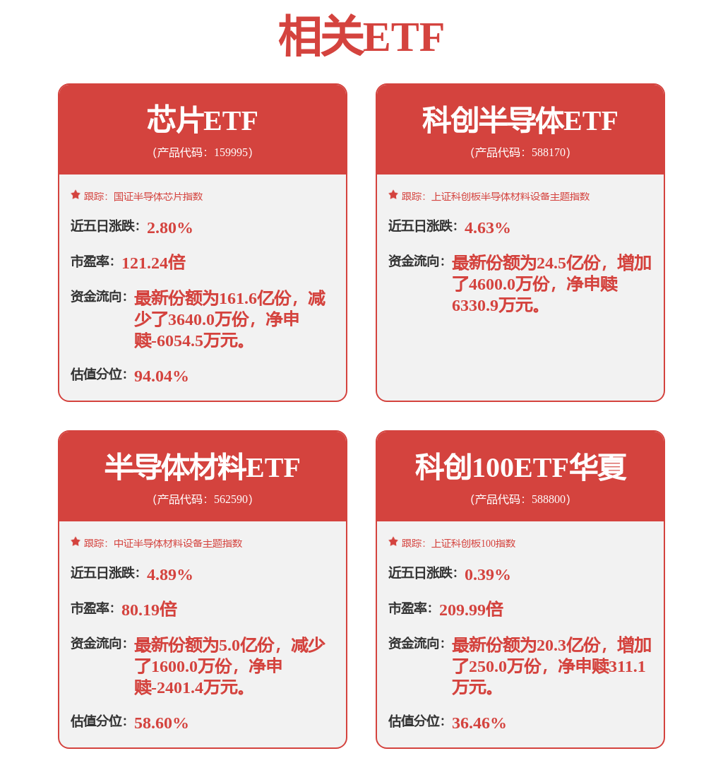 截至12月5日收盘,今日上证指数涨 0.70%、创业板指涨 1.36%,大盘整体回暖;科创 200 等成长类指数领涨,成长板块情绪活跃,为科创100ETF华夏(588800)提供了较强的板块联动支撑。而半导体板块今日低开下探后触底反弹,科创半导体ETF(588170)最终收涨0.14%,呈现下有底上有顶的态势。