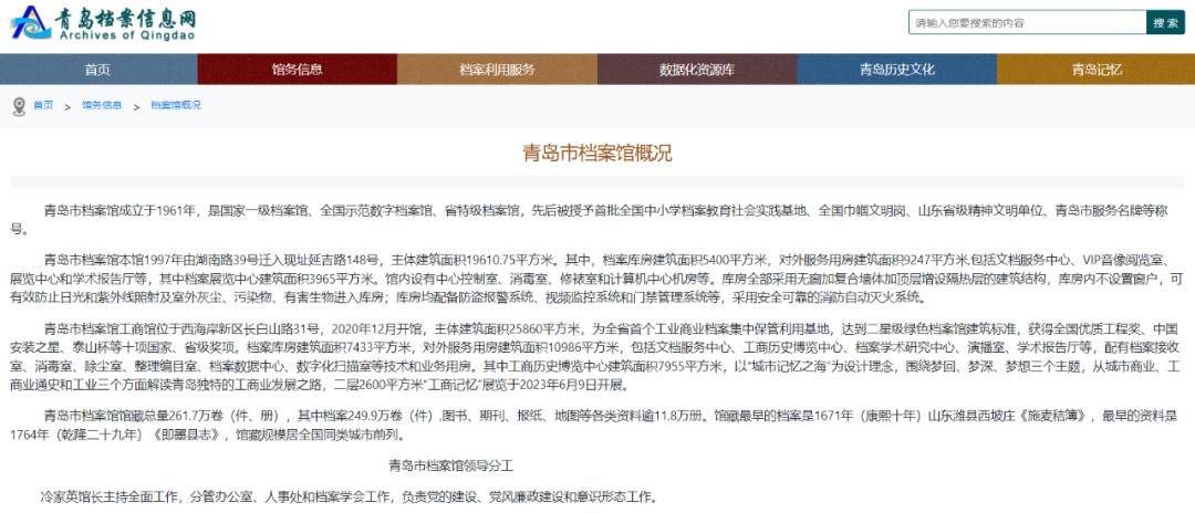 日前,青岛市档案馆官网更新显示:冷家英馆长主持全面工作,分管办公室、人事处和档案学会工作,负责党的建设、党风廉政建设和意识形态工作。