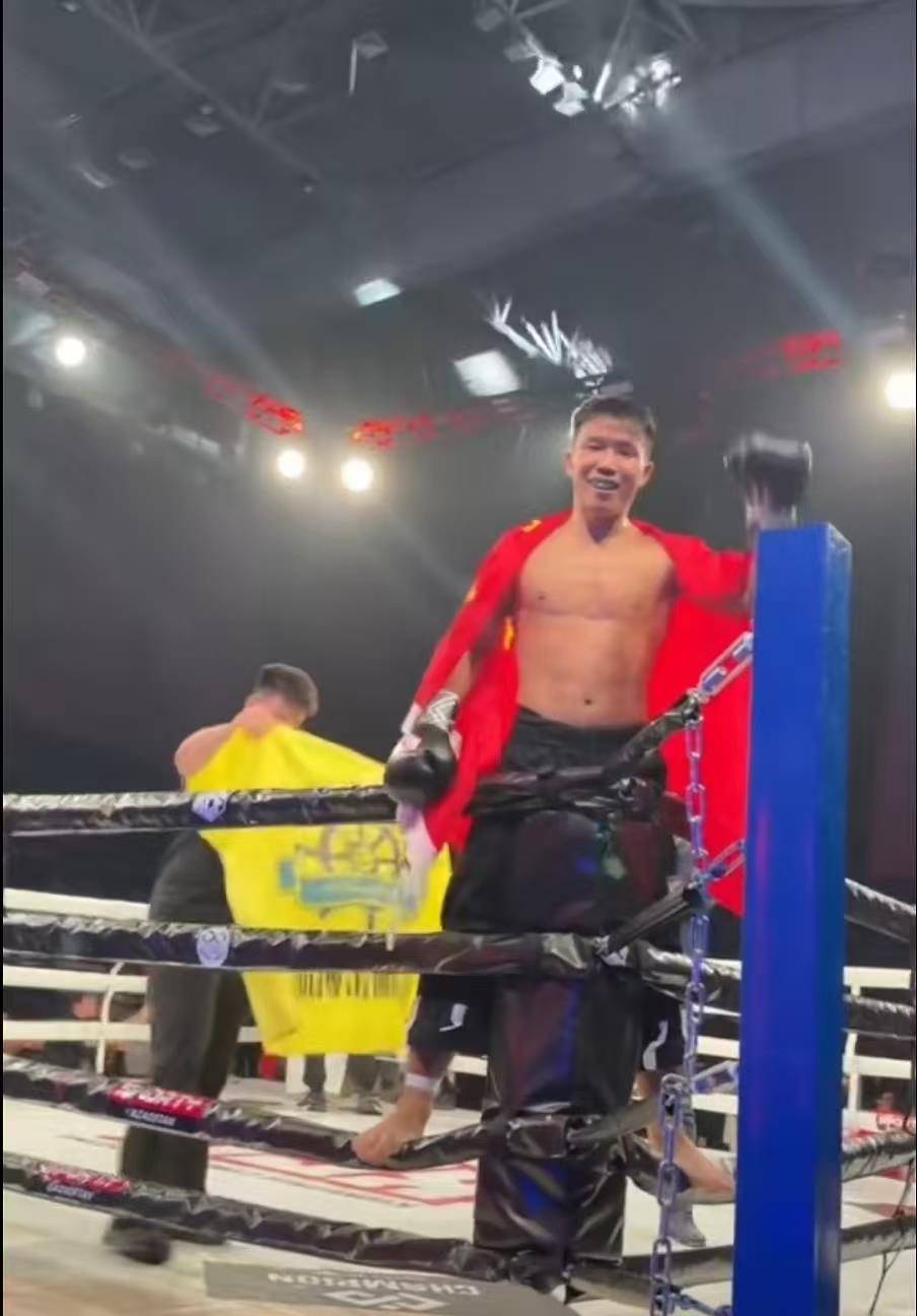 比赛结束后,王中贤身披国旗在拳台上呐喊“河南周口,打遍世界”,现场许多中国观众呐喊助威,多名河南老乡专程到场支持,争相合影。极目新闻记者注意到,凌晨3时许,赛事直播间仍有5000余名观众在线观看,并为他庆祝胜利。