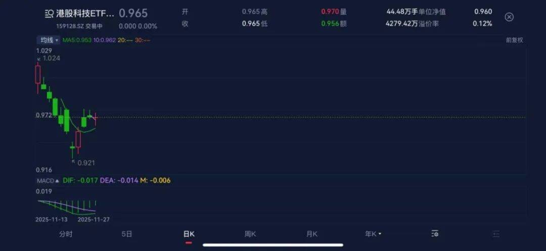 截至2025年11月27日,其跟踪的国证港股通科技指数最新市盈率仅29.6倍。