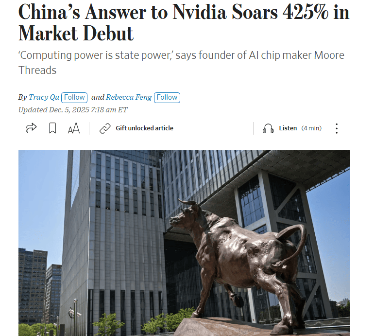 《华尔街日报》刊文指出,这家中国企业专注于研发人工智能训练所需的图形处理单元(GPU),被誉为“中国版英伟达”,其芯片主要应用于深度学习及其他AI相关场景。此次IPO的火爆表现,充分反映了市场对中国科技创新,尤其是人工智能芯片行业的强烈信心。