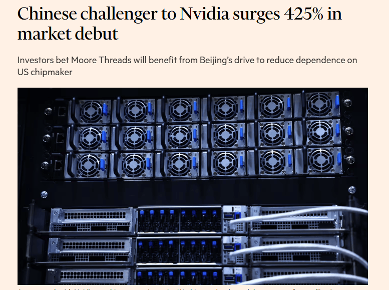 《金融时报》观察到,今年以来中国芯片制造及设计企业股价持续飙升,背后核心逻辑在于投资者普遍看好中国搭建人工智能产业关键零部件本土供应链的战略布局,进而纷纷加大相关领域投入。
