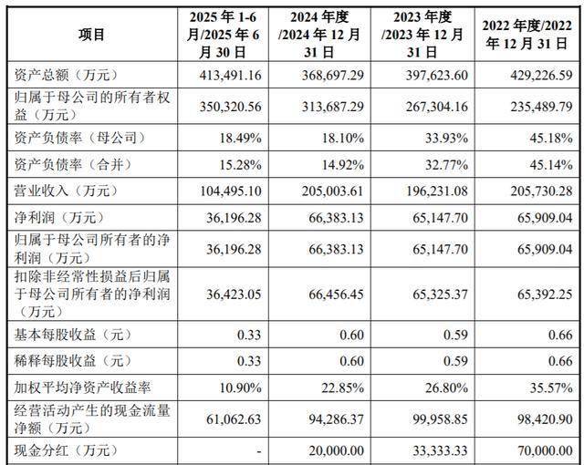 2022年至2024年及2025年上半年,马矿股份实现营业收入分别为20.57亿元、19.62亿元、20.50亿元和10.45亿元,实现归属于母公司股东的净利润分别为6.59亿元、6.51亿元、6.64亿元和3.62亿元。