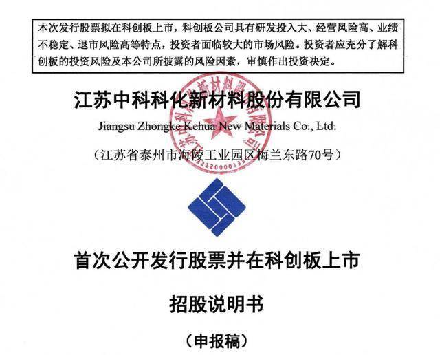 瑞财经 刘治颖 12月5日,江苏中科科化新材料股份有限公司(以下简称:中科科化)科创板IPO获受理,保荐机构为招商证券,保荐代表人为黄文雯、李思博,会计师事务所为致同会计师事务所。
