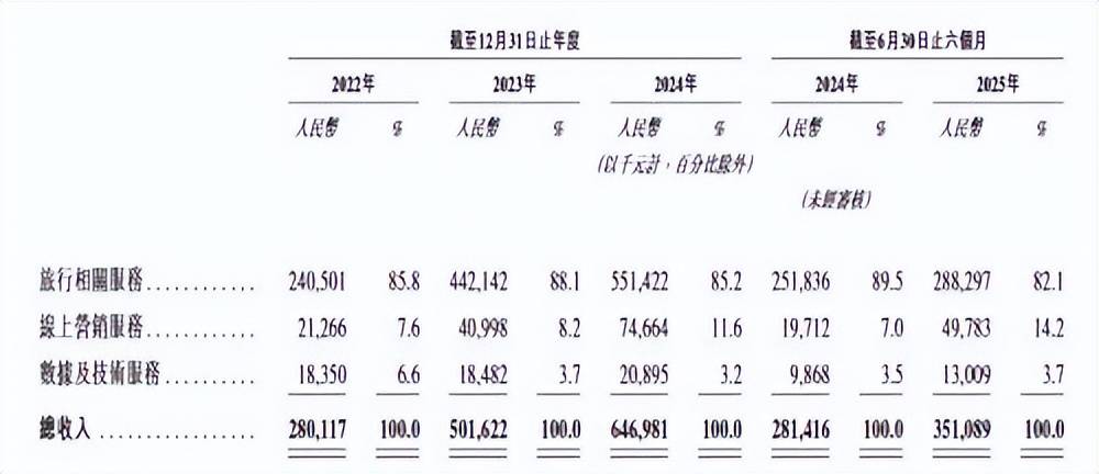 财报显示,2024年公司超70%的收入来自交通票务(机票+火车票)服务,其中机票服务占41.3%,火车票服务占26.9%。2025年上半年,公司机票GMV占总交易额约65%。这些数据显示,公司业务结构比较单一,集中度偏高。
