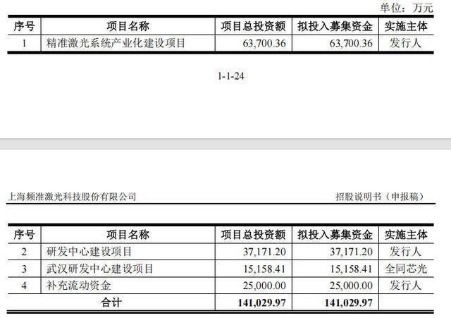 其中,6.37亿元用于精准激光系统产业化建设项目,3.72亿元用于研发中心建设项目,1.52亿元用于武汉研发中心建设项目,2.5亿元用于补充流动资金。
