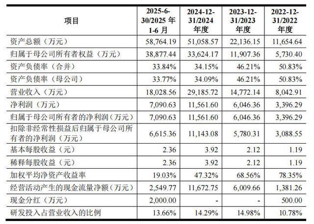 报告期内,公司毛利率分别为65.43%、68.53%、67.78%和69.96%,扣非净利润分别为3088.55万元、5780.31万元、1.11亿元和6615.36万元。