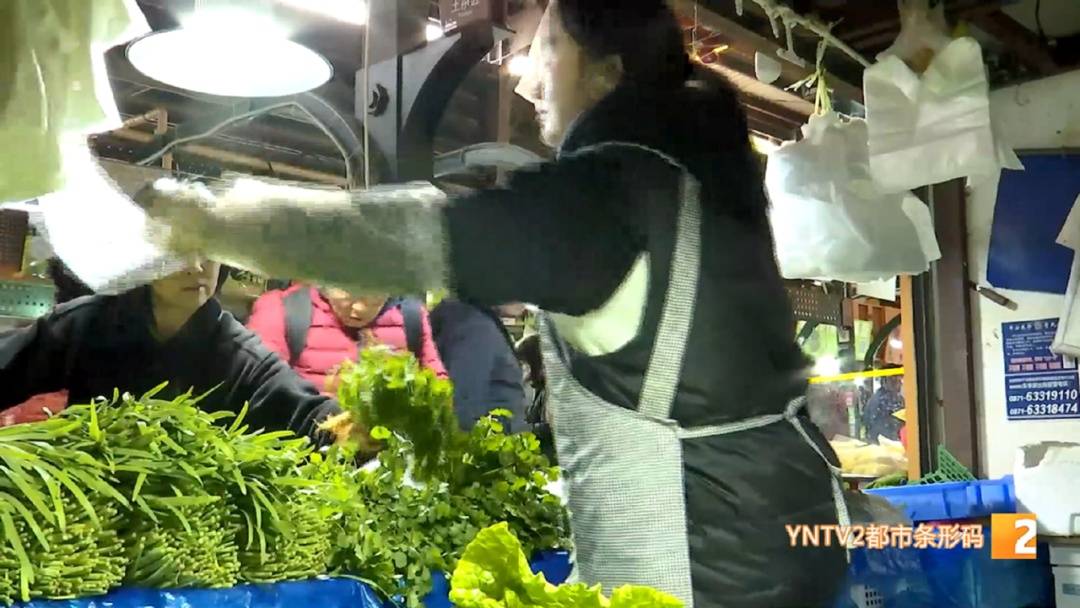 菜贩:“今年霜有点大,好多菜都被霜冻了,还有辣椒出省的也多,云南省从玉溪、西双版纳、建水过来的多。”