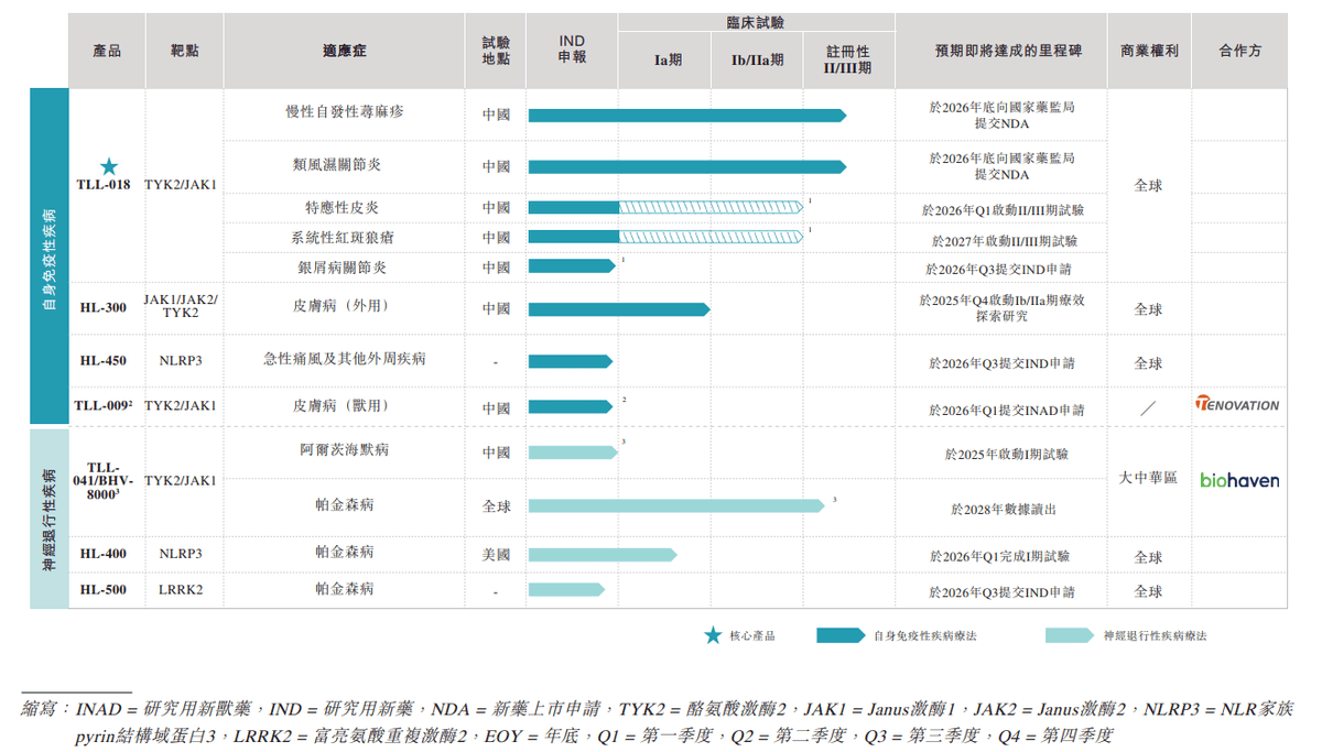 自身免疫性疾病管线中,核心产品TLL-018是全球唯一具有高选择性的TYK2/JAK1抑制剂。基于“一药多适应症”的开发策略,TLL-018旨在治疗慢性自发性荨麻疹(CSU)、类风湿关节炎(RA)、特应性皮炎(AD)、银屑病关节炎(PsA)和系统性红斑狼疮(SLE)在内的多种自身免疫性疾病。