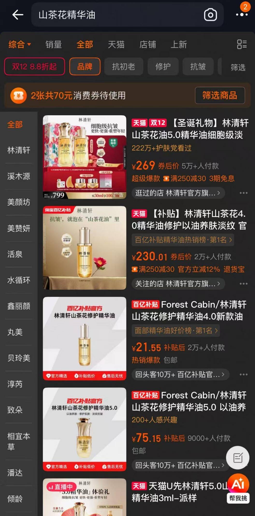 可偏偏现在,林清轩聚焦的山茶花精华油在消费市场如此亮眼,但却很少有头部品牌着重加码跟进,更多是溪木源、相宜本草等三四线品牌在发力。