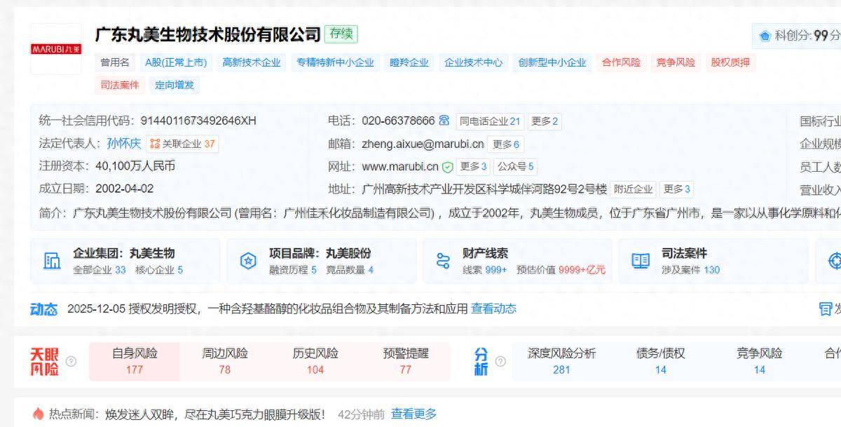 要知道,以同样在冲击港股IPO的丸美生物为例,天眼查APP显示:去年12月,丸美也宣布了改名,但却是将公司证券简称从“丸美股份”变更为“丸美生物”。并在当年年报中表示,更名标志着公司从传统美妆企业向生物科技美妆公司战略转型。