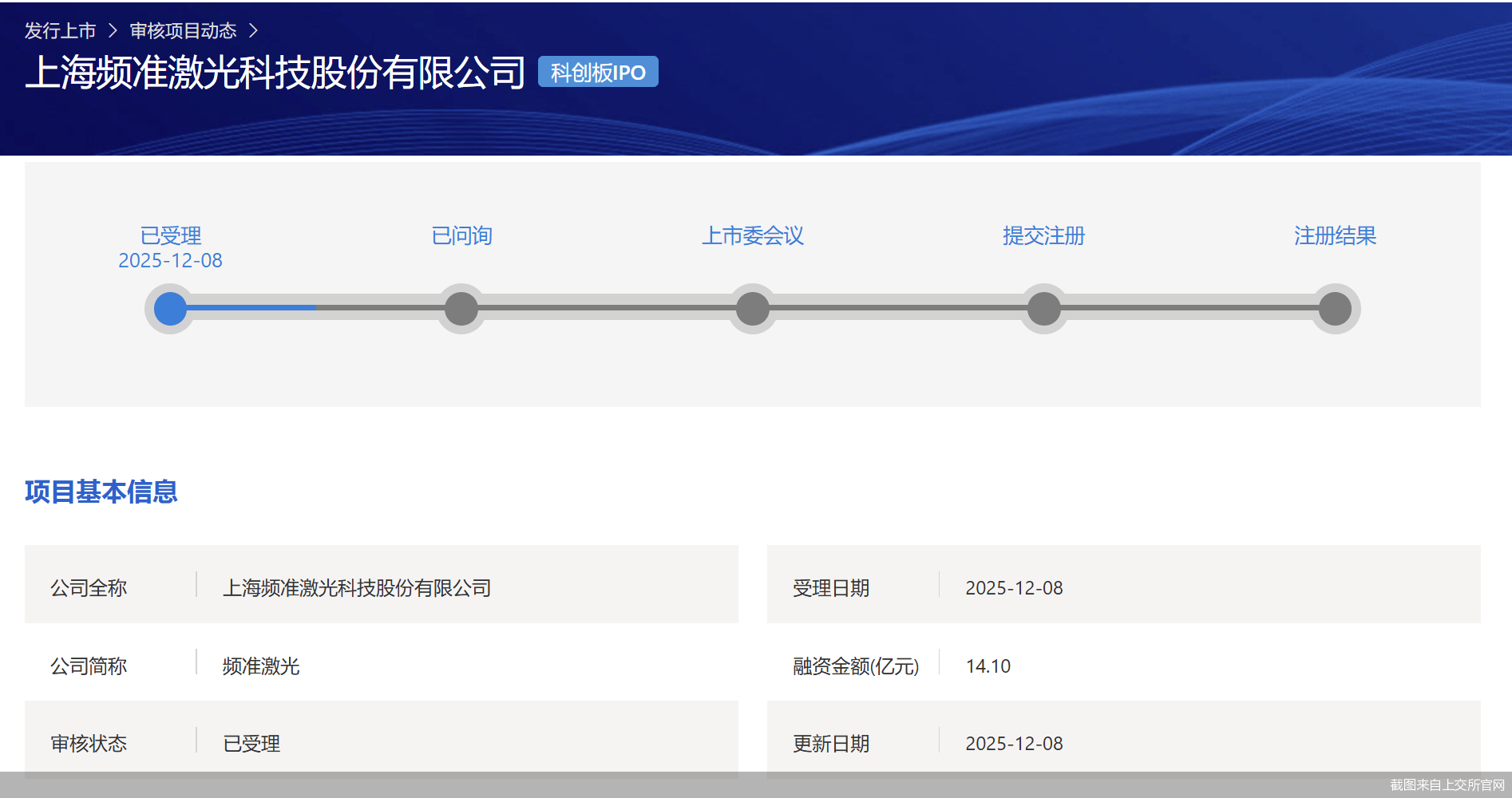 伴随着公司招股书获受理,频准激光也正式开启了IPO之路。