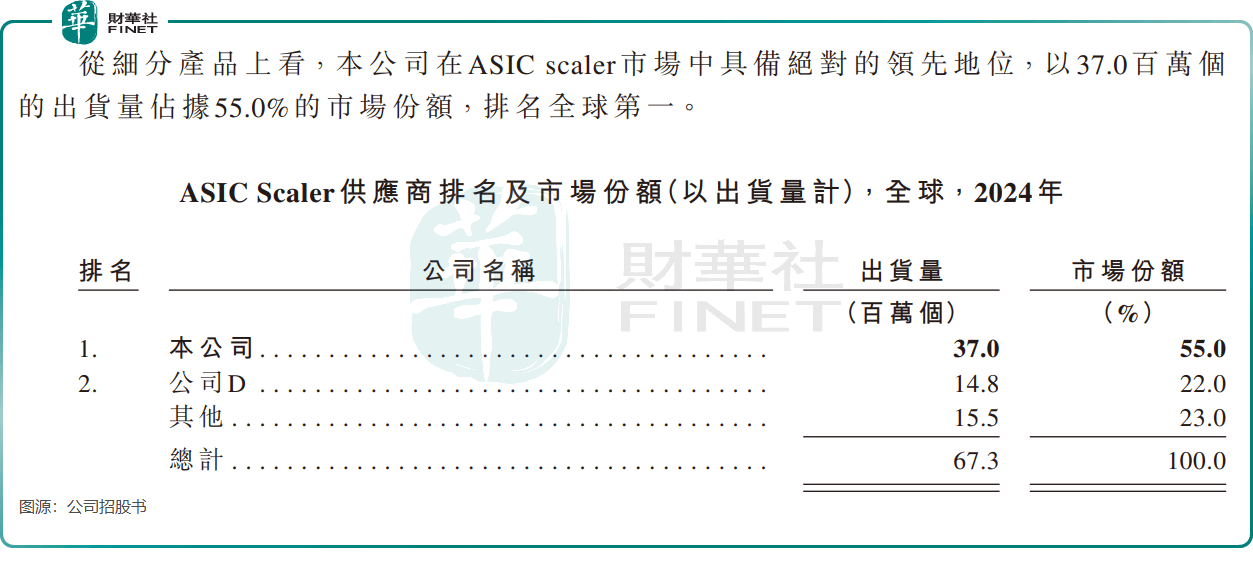 成立仅六年,曦华科技便以AI Scaler芯片(AI图像信号处理芯片)为核心,一举拿下全球ASIC Scaler行业第一的宝座。根据弗若斯特沙利文的报告,2024年公司该产品出货量达3700万颗,市场份额高达55%,较第二名高出33个百分点;在全球Scaler行业总市场中,其市占率也达到18.8%,稳居第二,成为细分领域的“隐形冠军”。