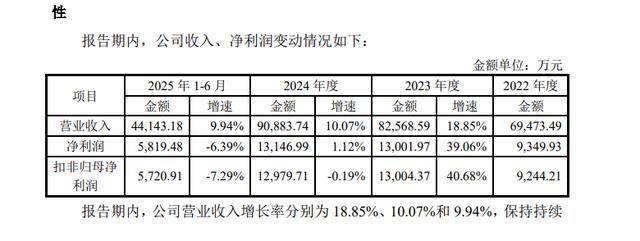 业绩方面,2022年-2024年及2025年1-6月,图特股份营业收入分别为6.95亿元、8.26亿元、9.09亿元和4.41亿元,净利润分别为9349.93万元、1.3亿元、1.31亿元和 5819.48 万元。