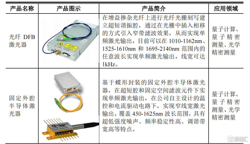 公司主要面向量子计算、量子精密测量等量子科技领域,以及晶圆制造、晶圆量检测、晶圆隐切等半导体领域,发展了全新的精准激光技术路线,推出波长、线宽、噪声、功率、脉冲等精准调控的激光器产品,助力我国量子科技和半导体产业链国产化进程。