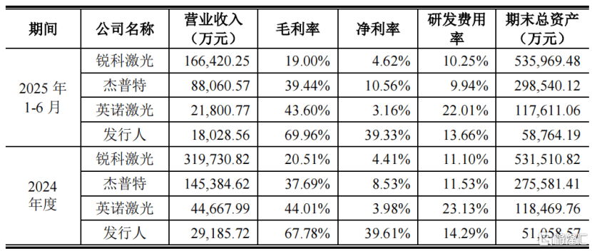 发行人与同行业可比公司的经营情况对比,来源:招股书
