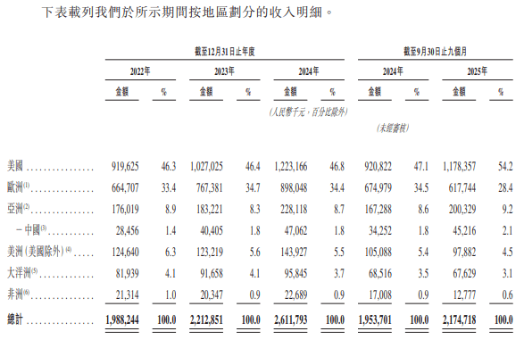 公司几乎全部收入均来自海外。于2022年、2023年及2024年以及截至2024年及2025年9月30日止九个月,公司的海外收入分别为人民币1,974.1百万元、人民币2,193.0百万元、人民币2,593.3百万元、人民币1,940.5百万元及人民币2,156.1百万元,分别占同期总收入的99.3%、99.1%、99.3%、99.3%及99.1%。因此,公司曾面临并将继续面临各种风险,包括与在不同司法权区开展业务相关的法律、监管、政治、经济、商业及其他风险,其中任何风险都可能对公司的财务业绩产生负面影响。