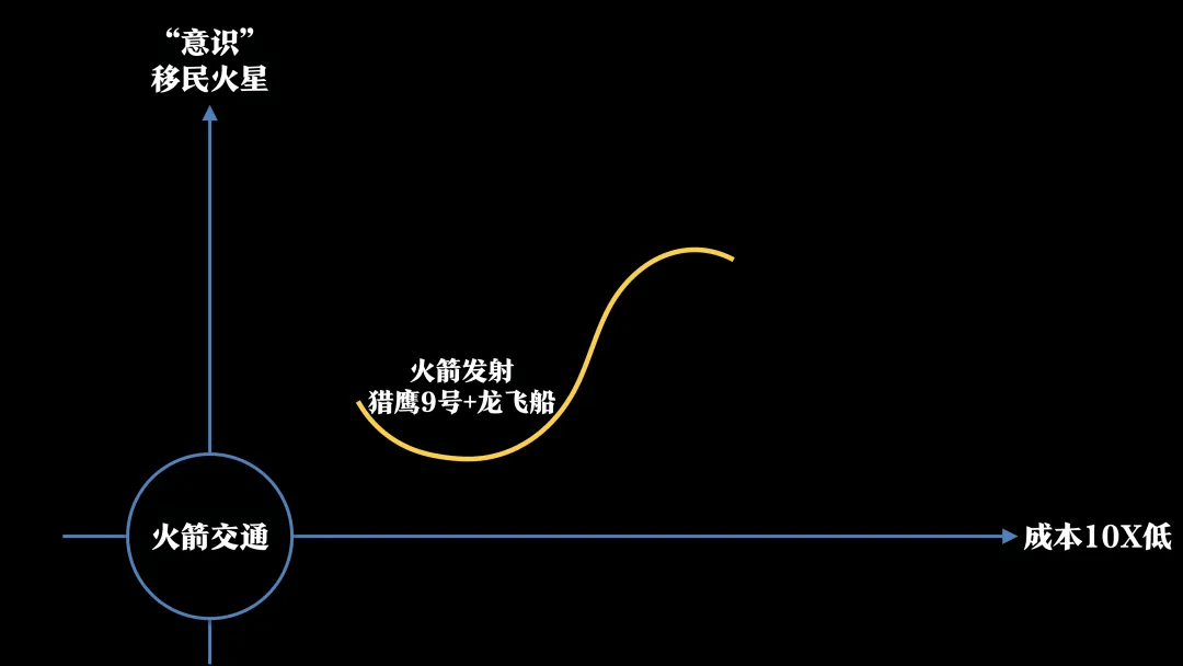 回到模型,隐含假设是火箭一次性使用。但发现这一假设后,可提出新假设——可重复使用。一旦火箭可重复使用,它就成为一种交通工具,像飞机、火车和汽车一样,这就是SpaceX的价值建模。其创新始于在前人基础上增加一个新维度(Y轴),建立自己的价值模型。