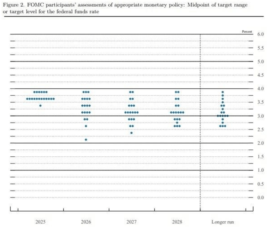美联储降息如期落地。当地时间12月10日,美联储宣布降息25个基点,将联邦基金利率目标区间下调至3.50%-3.75%,这是继9月17日,10月29日之后的年内第三次降息,幅度均为25个基点。本次降息落地前市场已经有充分预期,关注点更多在于美联储对后续降息路径的态度。点阵图中位数维持了2026年仅有1次降息的预测,鲍威尔也表示当前利率处于“有利位置”,表明后续降息门槛可能提高。