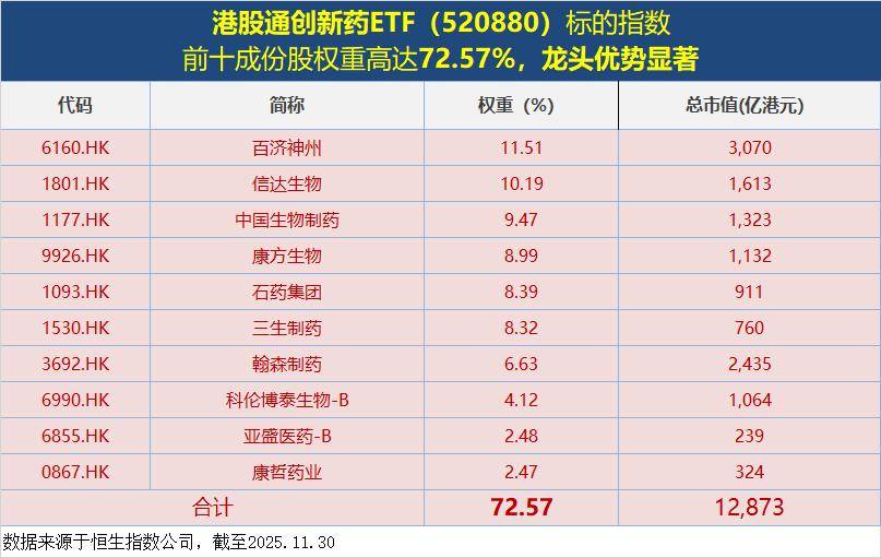 配置层面,港股创新药自9月上旬进入阶段调整期,至今已调整近3个月,配置性价比持续提升。把握港股创新药低吸窗口期,认准同类最大港股通创新药ETF(520880及其场外联接基金(025221),标的指数恒生港股通创新药精选指数具备三大独特优势