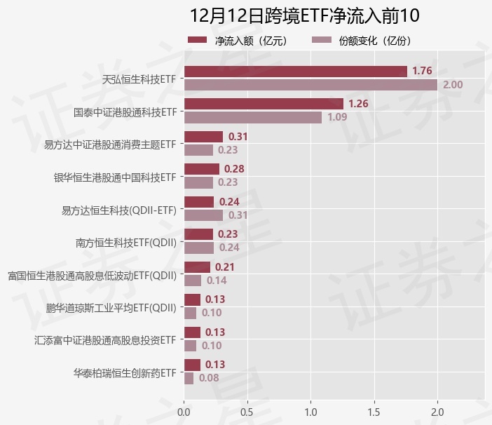 证券之星消息,12月12日跨境ETF基金合计资金净流入4.31亿元,近5个交易日累计净流入101.66亿元,5个交易日中出现日合计资金净流入的有5天(ETF资金流向计算公式:(当日ETF场内流通份额-前一交易日ETF场内流通份额)*当日ETF均价,计算结果仅供参考)。